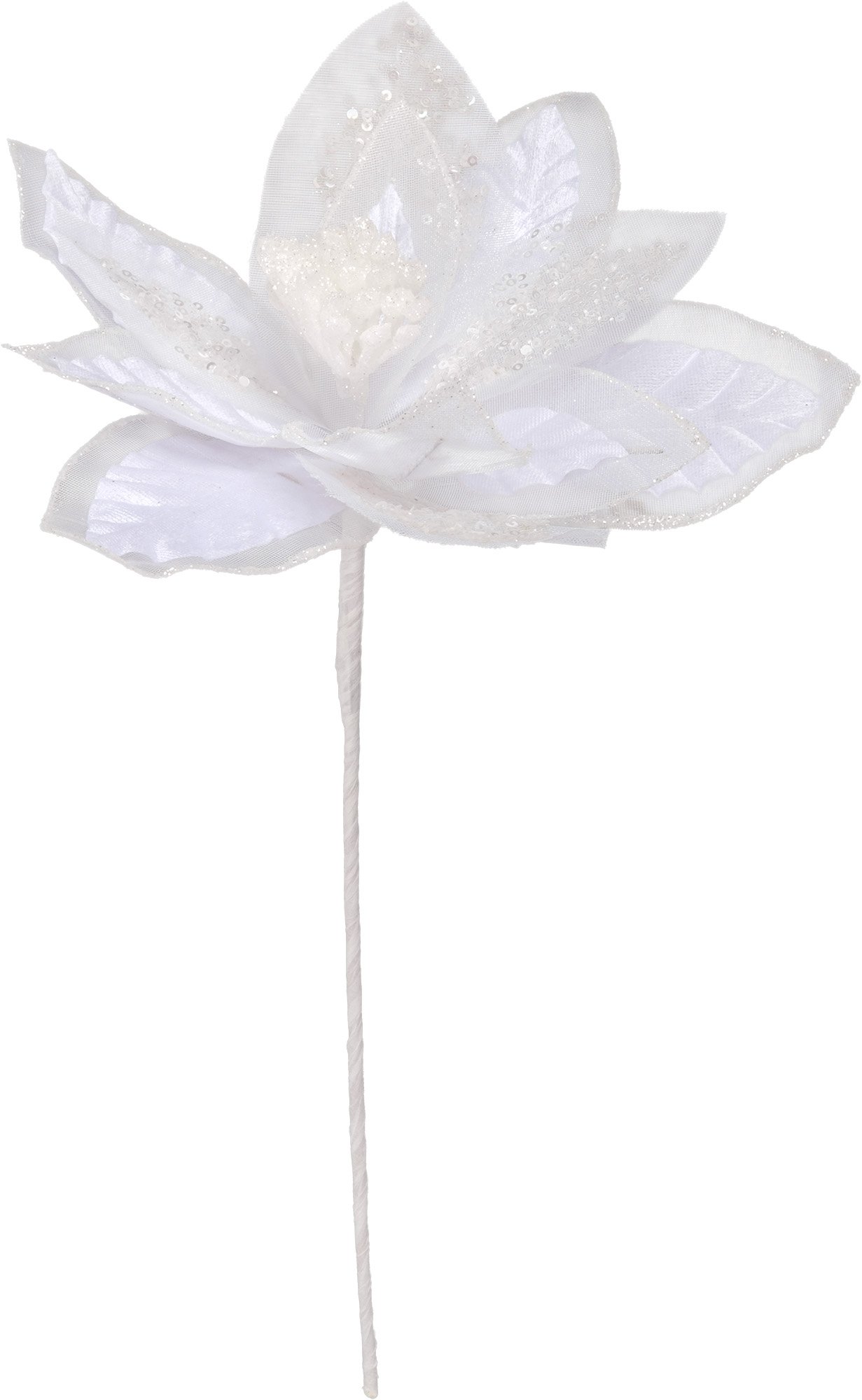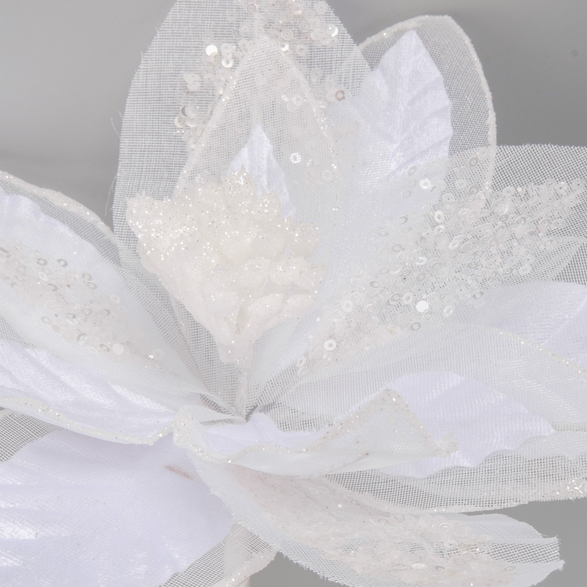 Откройте для себя великолепие декоративного цветка, который станет истинным украшением вашего новогоднего интерьера. Изысканный белый цветок высотой 24 см создаст атмосферу утончённой роскоши и праздничного волшебства.