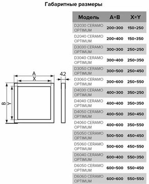 Скрытые ревизионные люки под плитку D CERAMO OPTIMUM предназначены для скрытия инженерных коммуникаций, использования в качестве декоративных экранов под ванную, оформления ниш для сейфов или полок под бытовую химию. Распашная дверца с фронтальным открытием люка сохраняет общий рисунок поверхности без подрезки и подгонки плитки. Петля регулируется как по вертикали, так и по горизонтали. Возможно изготовление специальных изделий.