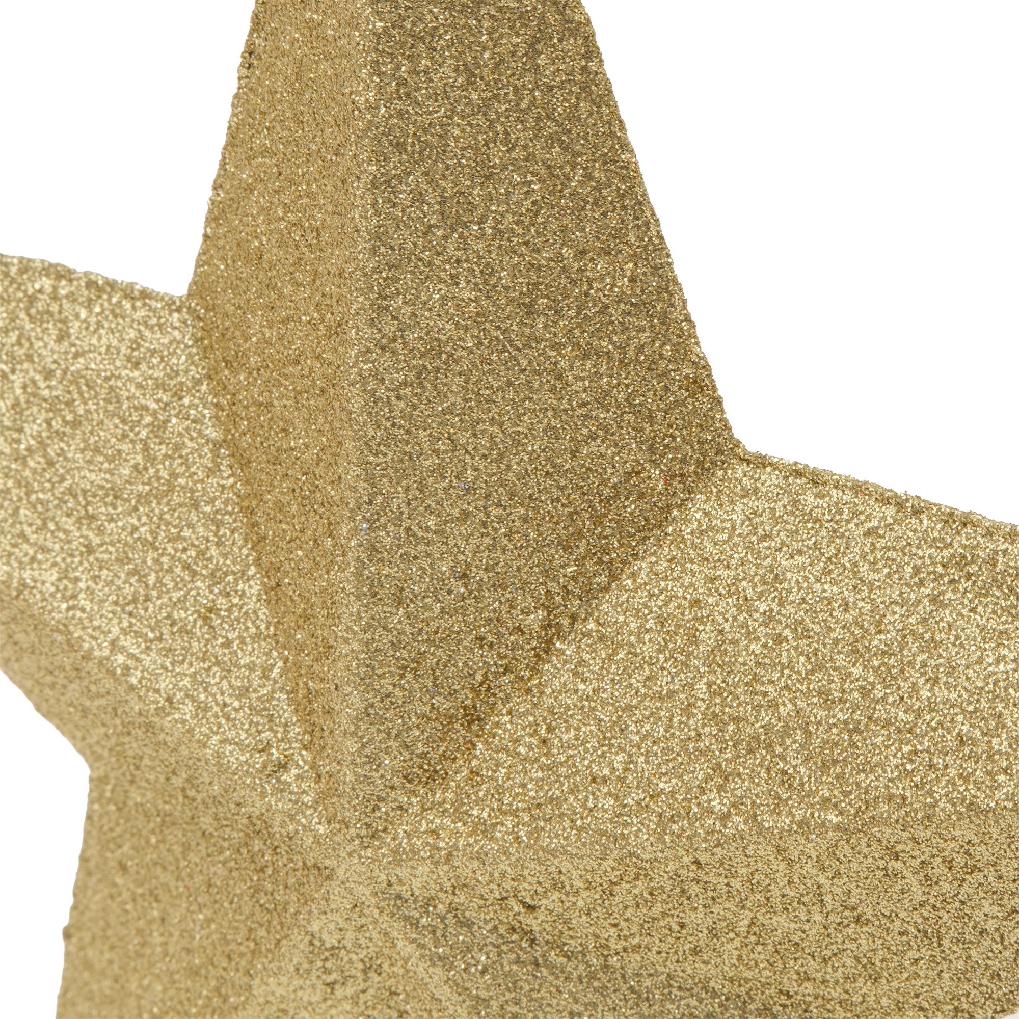 Размеры 27×28 см обеспечивают идеальную видимость: звезда заметно выделяется, но не перегружает композицию. Роскошное золотое покрытие с глиттером создаёт эффект живого мерцания — при малейшем движении воздуха она переливается, словно осыпана мельчайшими бриллиантовыми искрами.