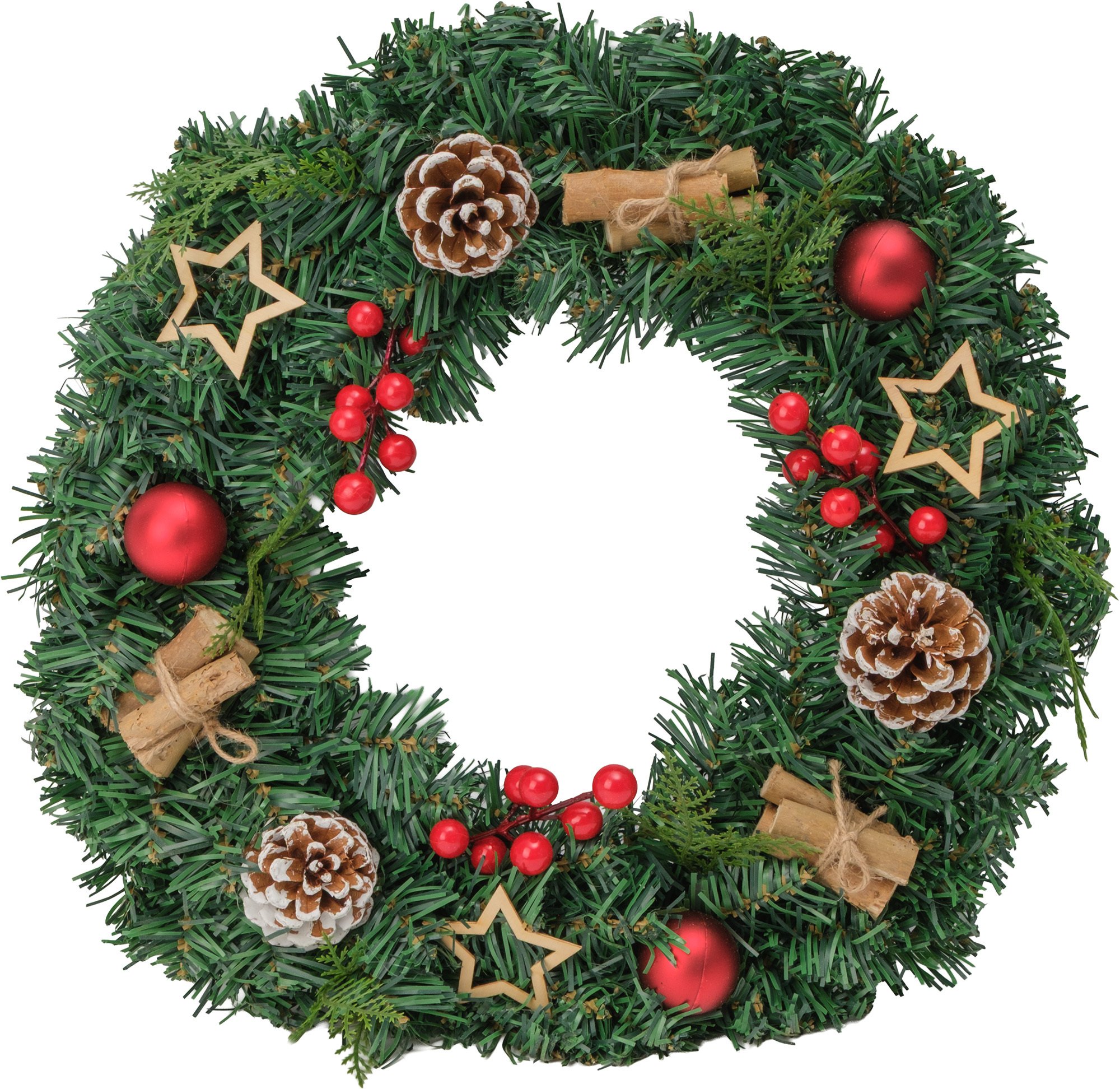 Особенности: Прочный материал ПВХ — долговечный и устойчивый к внешним воздействиям Детальная проработка — каждый элемент декора выглядит как настоящий Пышная форма — объёмный венок создаёт эффект натуральной ели Универсальное крепление — легко крепится на любую поверхность