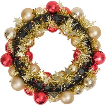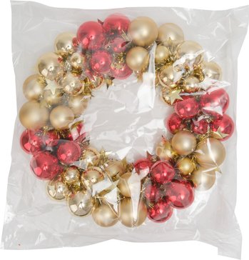 • Изысканный дизайн – сочетание красной мишуры с золотыми акцентами создаёт поистине королевский образ • Роскошные детали – декоративные шары из качественного ПЭТ добавляют композиции торжественности • Оптимальный размер 35 см – идеально подходит для любого интерьера, от входной двери до стены гостиной • Прочная конструкция – венок сохраняет форму и яркость на протяжении всего праздничного сезона Создайте незабываемую праздничную атмосферу прямо сейчас! Закажите роскошный венок и подарите своему дому настоящее новогоднее великолепие.