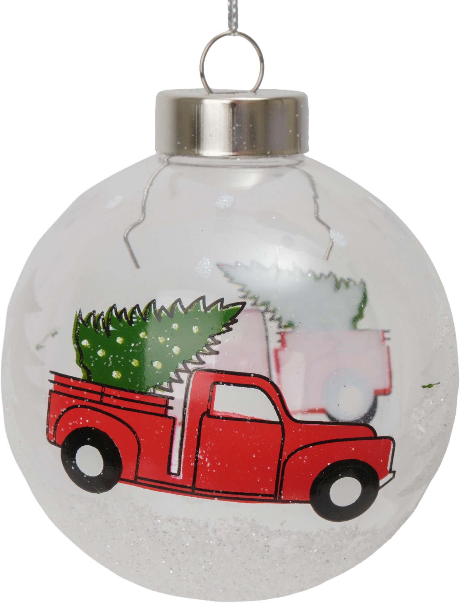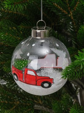 Стильный дизайн с изображением мощного грузовика привнесёт в традиционный новогодний декор современный и динамичный элемент. Прозрачное исполнение создаёт эффект объёмности, делая украшение ещё более привлекательным.