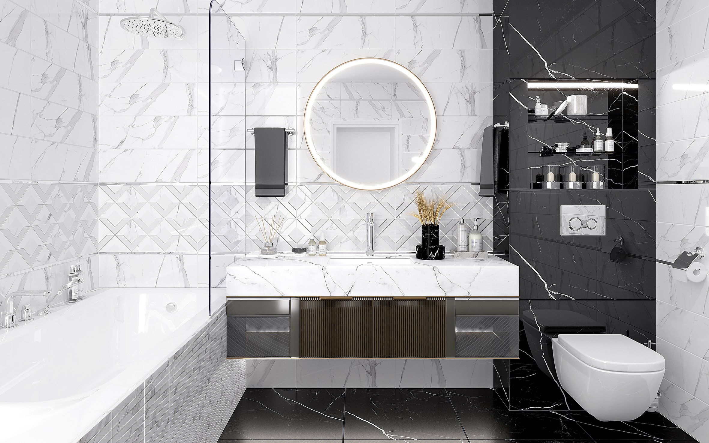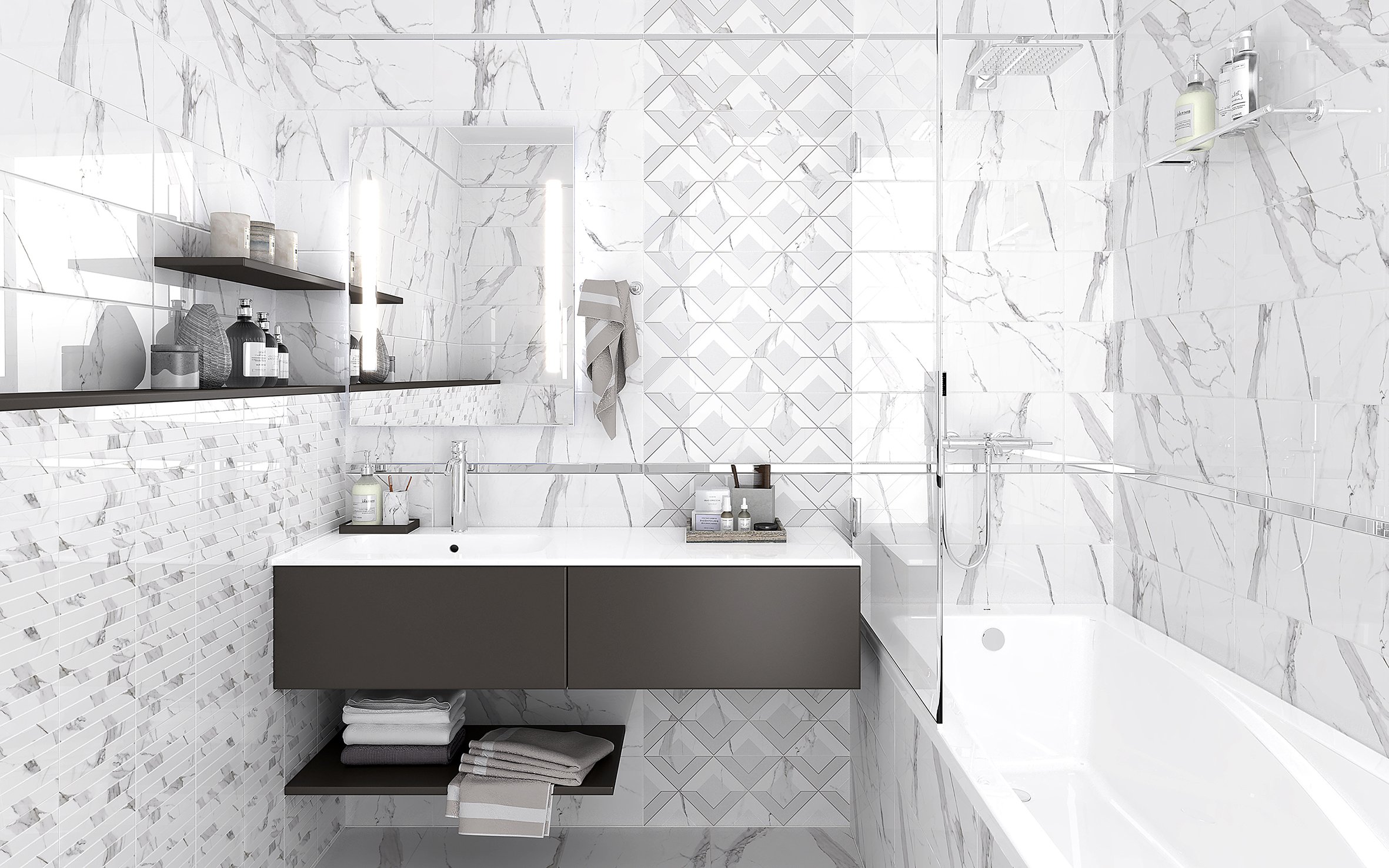 Он подходит для различных помещений, включая ванные комнаты, кухни, гостиные и коридоры. Белый декор легко комбинируется с другими цветами и материалами, позволяя создавать интересные контрасты и подчеркивать другие элементы интерьера.