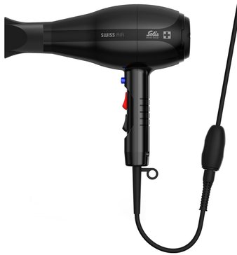 Фен Solis Air Black 360 оснащен 3-метровым сетевым шнуром, который вращается на 360°. Это позволяет пользоваться устройством и даже ходить по комнате без риска спутывания кабеля. Мощность 2000 Вт обеспечивает быструю сушку волос. Несложная система управления позволяет установить оптимальные настройки.