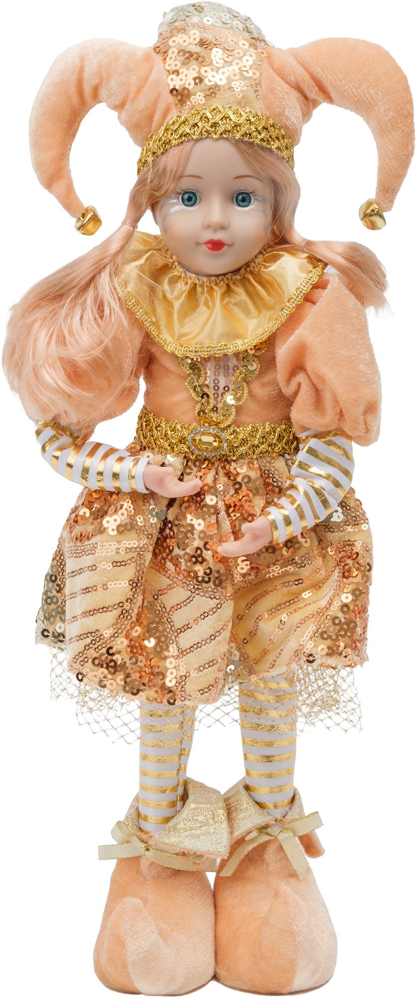 Изящная фигурка высотой 53 см очарует с первого взгляда: благородный золотой цвет придаёт ей особое сияние, а утончённые черты создают неповторимую атмосферу новогоднего чуда. Николетта станет центральным элементом праздничного декора — будь то нарядная ёлка, каминная полка или праздничный стол.