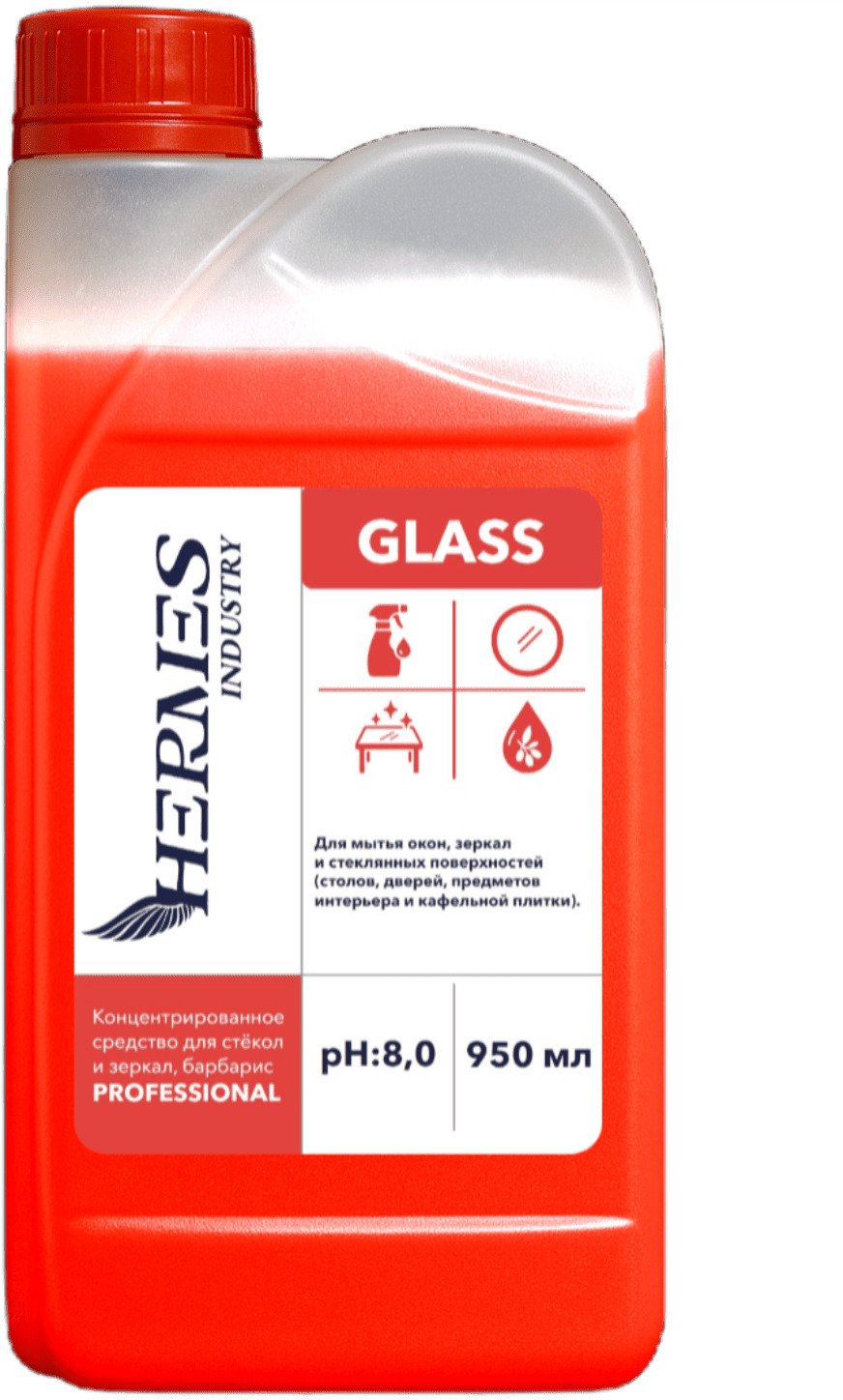 - Средство д/мытья стекол и зеркал Hermes Industry Professional Glass 950мл Барбарис концентрат