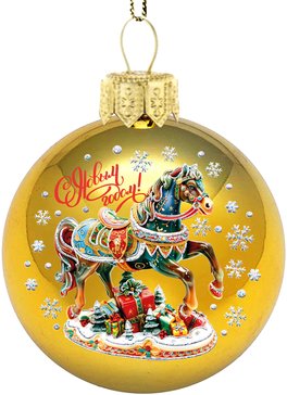 Прекрасный стеклянный елочный шар, украшенный изящным рисунком грациозной лошади. Деликатный рисунок и блеск стекла создают ощущение волшебства и зимней сказки. Идеальное украшение для вашей ёлки, которое добавит нотку элегантности и уюта.
