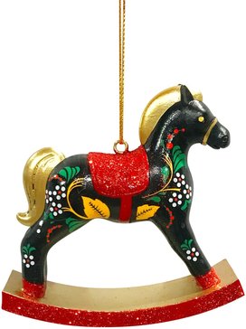 Эта очаровательная лошадка-качалка перенесет вас в мир беззаботных игр и волшебных снов. Новогоднее украшение, которое пробуждает самые теплые воспоминания и дарит ощущение уюта и радости. Лошадка выполнена из полирезины и раскрашена узорами с народными мотивами.