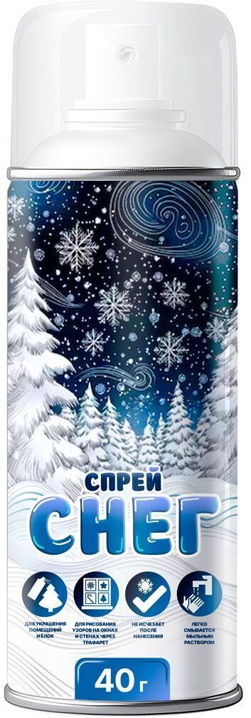 Синтетический снег подойдет для новогоднего оформления, например, окон и новогодних елей к празднику. Легкая дымка частиц спрея красиво покрывает поверхность, создавая заснеженный эффект. Снег имеет белый цвет, находится в баллоне, так что его удобно распылять как обычный аэрозоль. Синтетический снег поможет внести последние штрихи в новогодний декор и сделает праздник более красивым и запоминающимся.