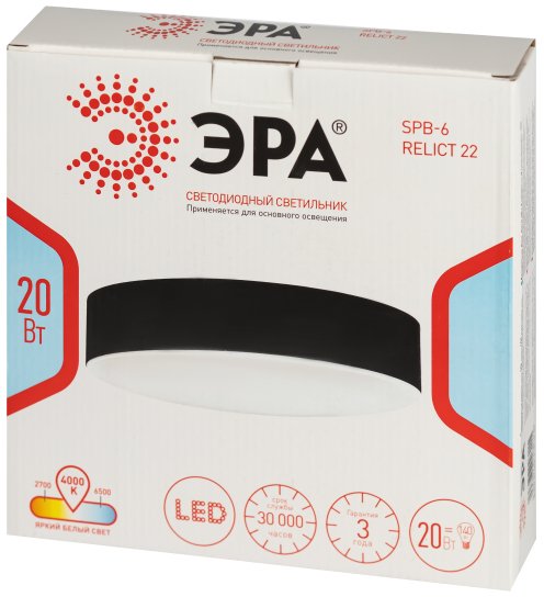 - Светильник потолочный светодиодный ЭРА Relict 22 SPB-6-20 4К WH 20W 4000K Белый