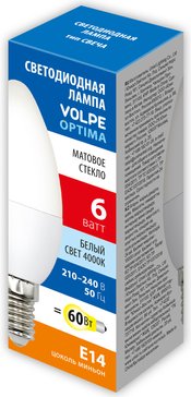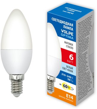 - Лампа светодиодная VOLPE LED-C37-6W 4000K E14 FR SLS
