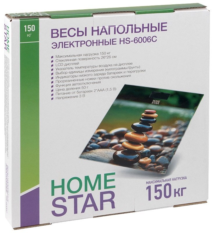 - Весы напольные электронные HomeStar HS-6006C до 150 кг стекло, камни