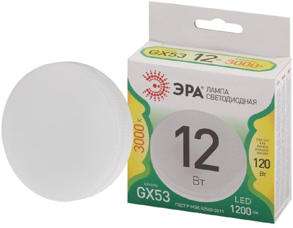 - Лампа светодиодная ЭРА GREEN LINE LED GX-12W-830-GX53 GL GX53 12 Вт таблетка теплый свет