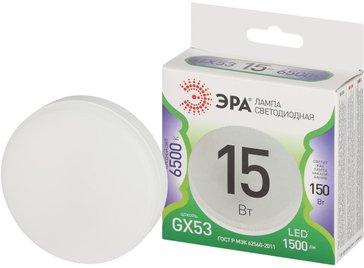 - Лампочка светодиодная ЭРА GREEN LINE LED GX-15W-865-GX53 GL GX53 15 Вт таблетка холодный свет