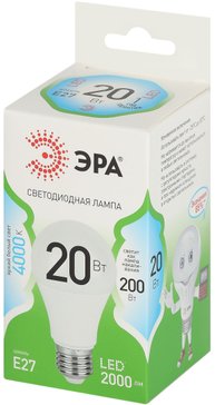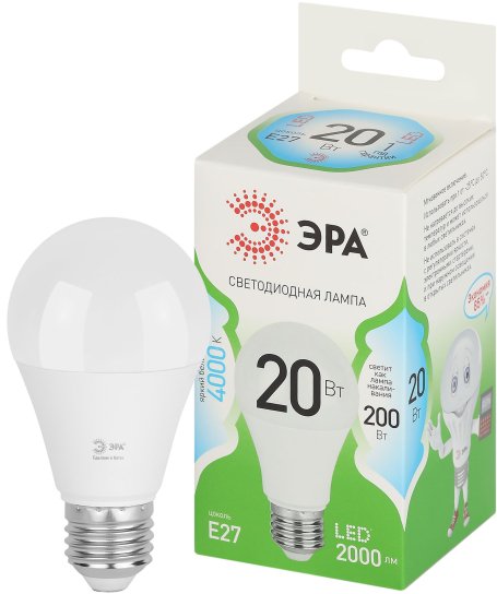 - Лампочка светодиодная ЭРА GREEN LINE LED A60-20W-840-E27 GL E27 20 Вт груша яркий белый свет