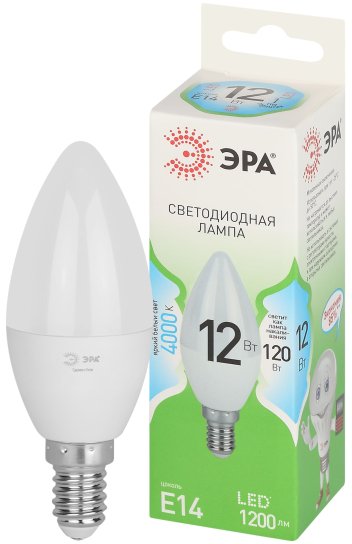 - Лампочка светодиодная ЭРА GREEN LINE LED B35-12W-840-E14 GL E14 12 Вт свеча яркий белый свет