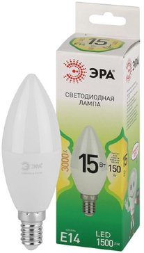 - Лампочка светодиодная ЭРА GREEN LINE LED B35-15W-830-E14 GL E14 15 Вт свеча теплый свет