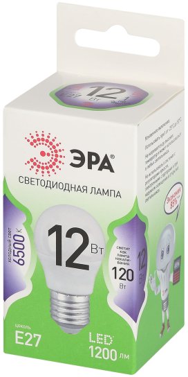 - Лампочка светодиодная ЭРА GREEN LINE LED P45-12W-865-E27 GL E27 12 Вт шар холодный свет