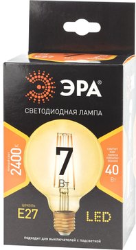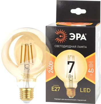- Лампочка светодиодная ЭРА F-LED G95-7W-824-E27 gold E27 / Е27 7Вт филамент шар золотистый теплый белый свет