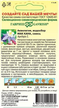 - Семена Аквилегия Мак Кана культурная гигант 0,05г
