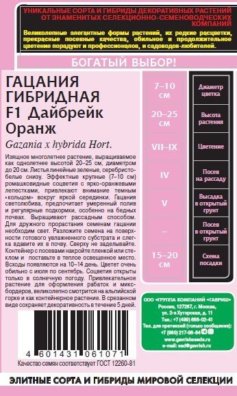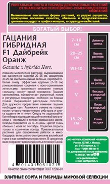 - Семена Гацания Дайбрейк Оранж F1 4шт