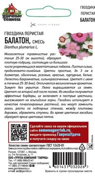 - Семена Гвоздика перистая Балатон смесь 0,1г