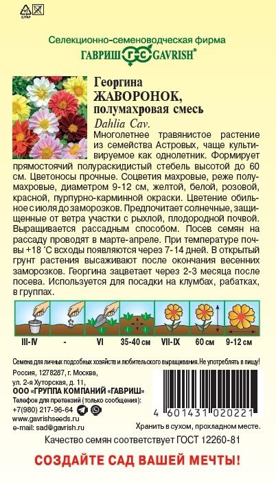 - Семена Георгина Жаворонок смесь 0,3г