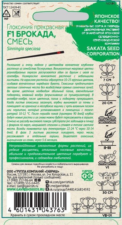 - Семена Глоксиния Брокада F1 4шт