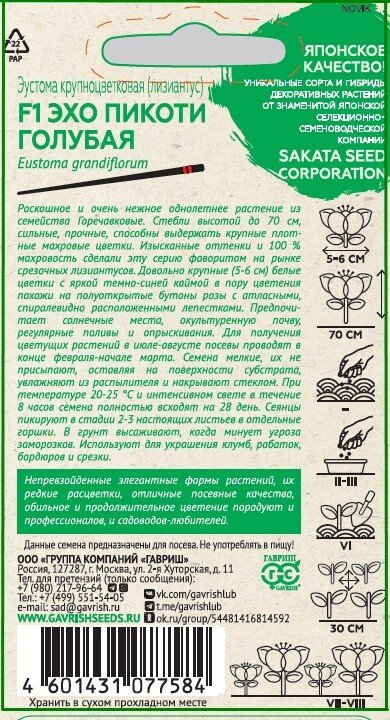 - Семена Эустома Эхо Пикоти голубая F1 4шт