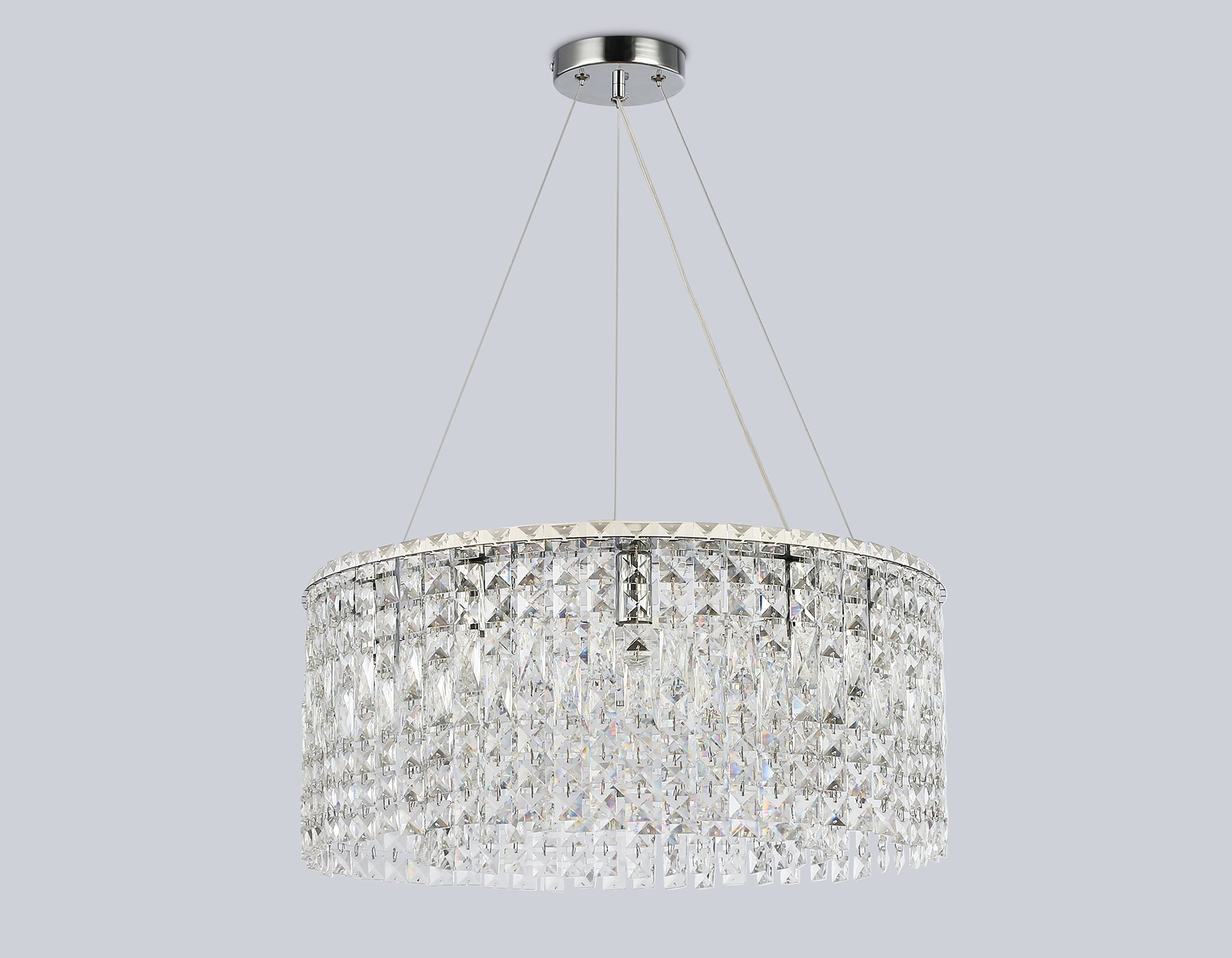 Подвесная люстра с хрусталем из коллекции TRADITIONAL TR5450 представлена в стиле неоклассика и оснащена десятью цоколями Е14. Светильник выполнен из металлического основания цвета "хром" с прочными тросами, хрустальных плафонов и будет прекрасным дополнением в любом помещении.
