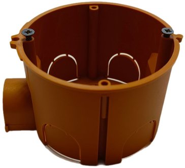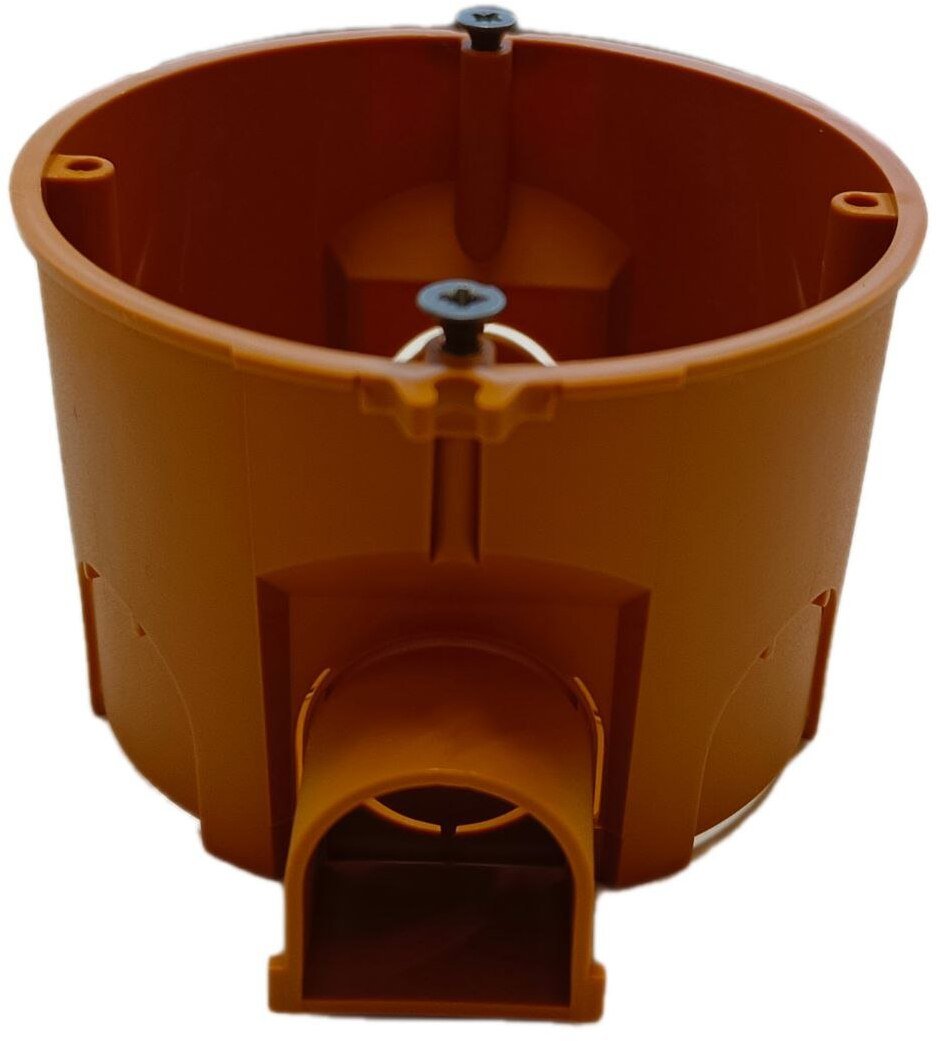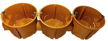 Эта установочная коробка предназначена для монтажа в сплошные стены из бетона, кирпича, газобетона и других плотных материалов. Она оснащена специальными отверстиями для фиксации строительным раствором (гипсом, алебастром, штукатуркой) и имеет выступы для стыковки с соседними коробками, что позволяет создавать ровные блоки для сдвоенных и строенных розеток или выключателей.