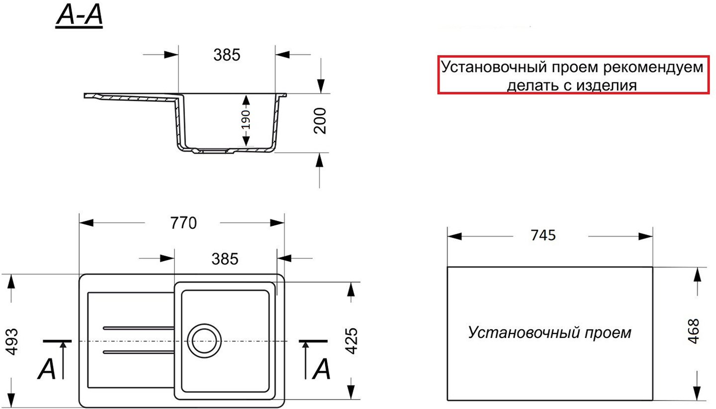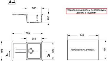 - Мойка для кухни врезная Mixline ML-GMS07 75х49,5см глубина чаши 20см, мрамор, серый