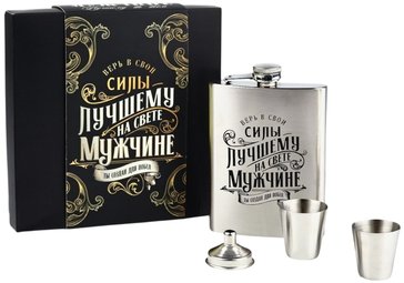 Преимущества набора:Высокое качество материалов: все элементы набора изготовлены из нержавеющей стали, которая не окисляется и не меняет вкус напитка.Удобство использования: фляжка имеет функциональную крышку, что обеспечивает герметичность и сохранность напитка. Воронка позволяет аккуратно переливать жидкость из одной ёмкости в другую.Стильный дизайн: подарочный набор выполнен в элегантном серебристом цвете, а упаковка в чёрном.