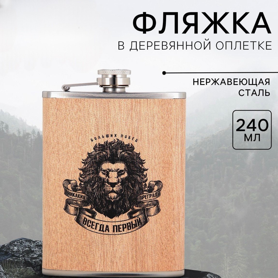 - Фляжка Всегда первый 240мл нерж.сталь, дерево