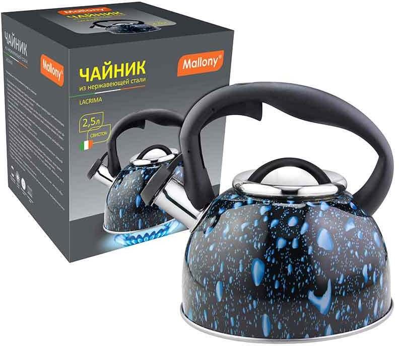 - Чайник Mallony Lacrima 2,5л нерж.сталь, свисток, черный, индукция