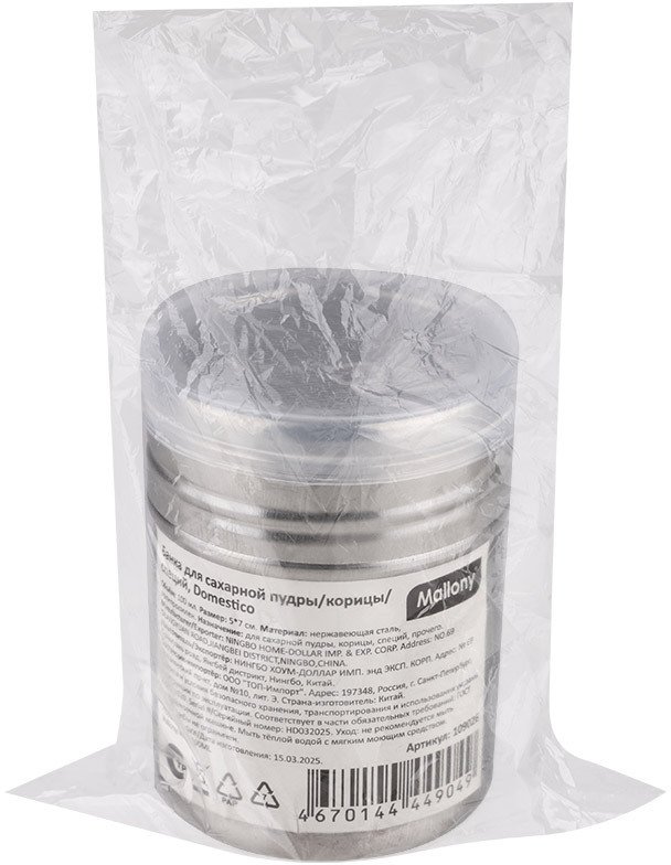 - Емкость д/сахарной пудры, специй Mallony Domestico 5х7см 100мл нерж.сталь
