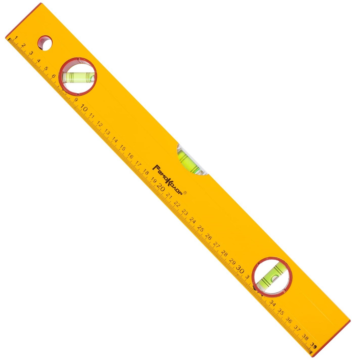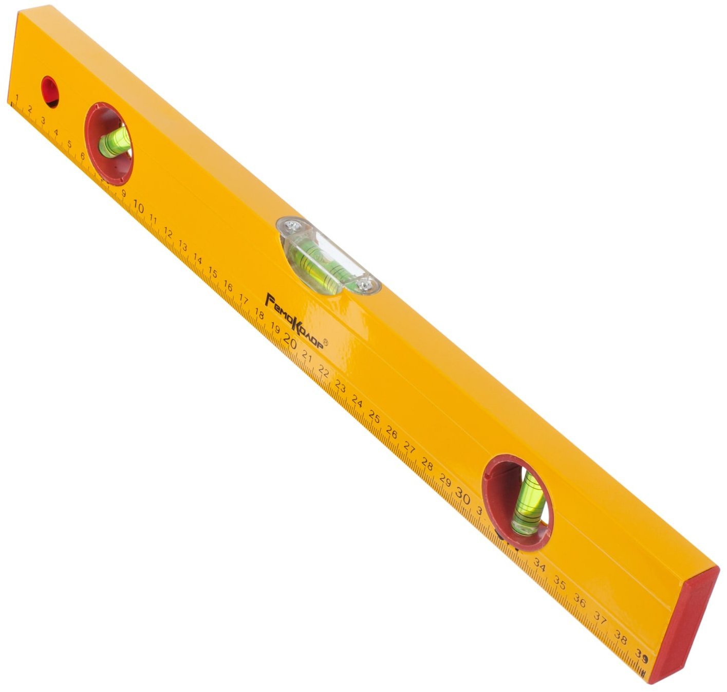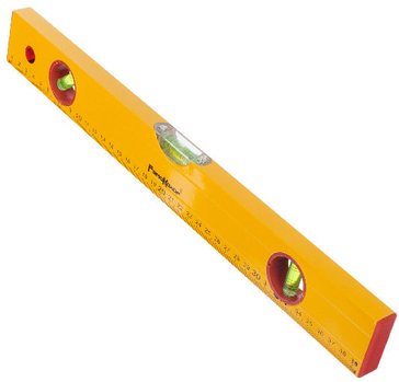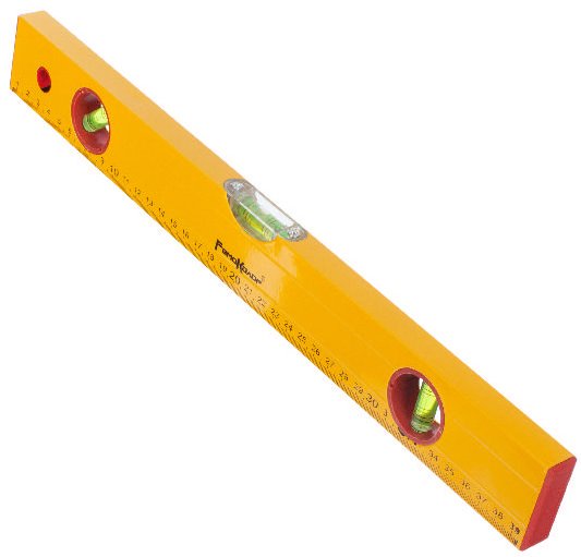Коробчатый алюминиевый корпус, 3 акриловых глазка, точность измерений – 1 мм/м, линейка. Ярко-желтый цвет корпуса и контрастная разметка на ампулах обеспечивают отличную видимость в любых условиях освещения. Резиновые накладки на торцах защищают уровень от повреждений при падении и предотвращают скольжение по поверхности. Материал изготовления: алюминий, пластик.